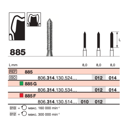 Применяется в стоматологии для тонкой обработки эмали и дентина при формовке полостей или подготовке к реставрации. Подходит для работы с композитами и керамикой, востребован при манипуляциях, где требуется особая точность.